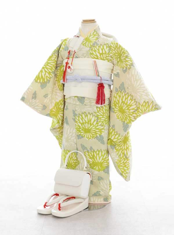 黄緑、ベージュ、白を基調とした柔らかな色合いが特徴です。全体にあしらわれた花柄が、自然の美しさを感じさせるデザインでお子様に上品で落ち着いた印象を与えます。 黄緑の色合いが若々しさをひきたて、ベージュと白が優雅さを加えています。花柄のデザインが繊細で可憐な雰囲気を醸し出しています。これらの色の組み合わせが魅力的に演出します。