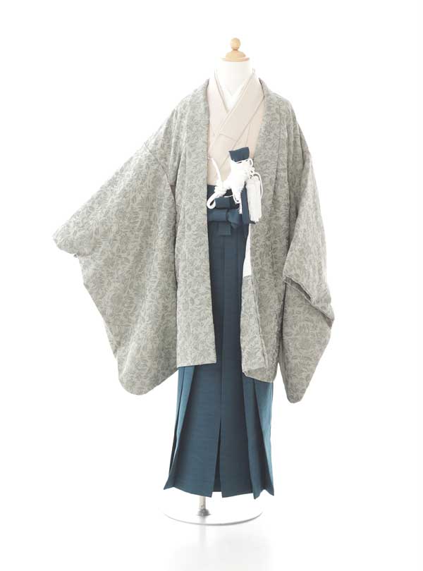 スタジオエミュオリジナルデザインの1着です。深いターコイズ色の袴が特徴的で全体を引き締めます。羽織には淡いグリーンを基調とした小花柄が上品な印象で洗練された印象です。 淡いベージュの着物を合わせることで落ち着いた雰囲気でシックなデザインで人気の着物です。ナチュラルな雰囲気が好きな方におすすめです。