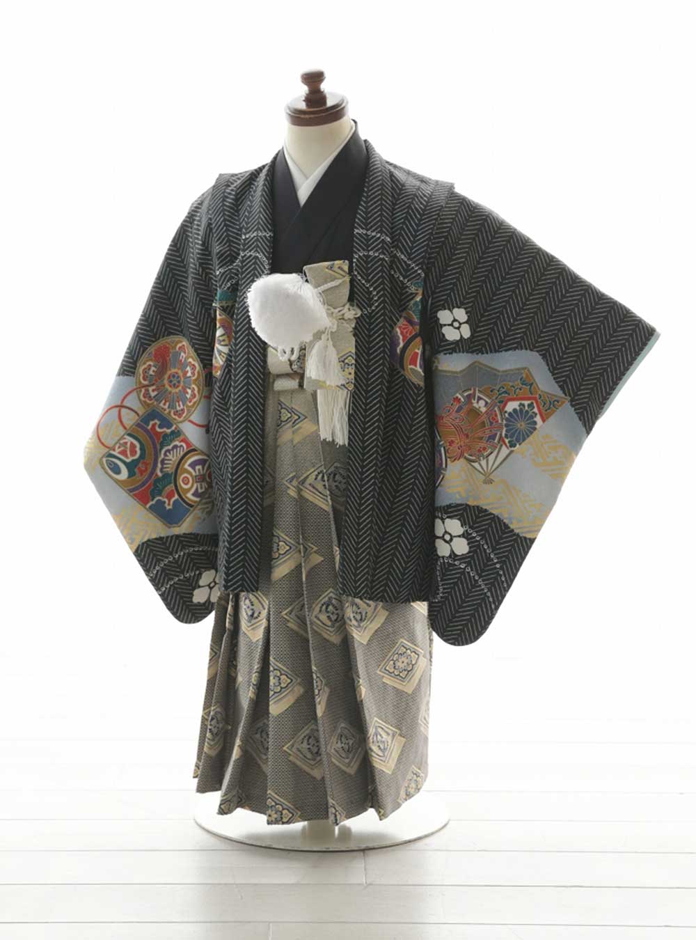 全体的に暗めのトーンで統一された大人びた印象を与えるデザイン。描かれた水の流れのような柄は流水文様と呼ばれるもので、流れる水は濁らず常に清らかであることから、苦難や災難を流し去ると言われています。伝統的な古典柄が好きな方におすすめの着物です。