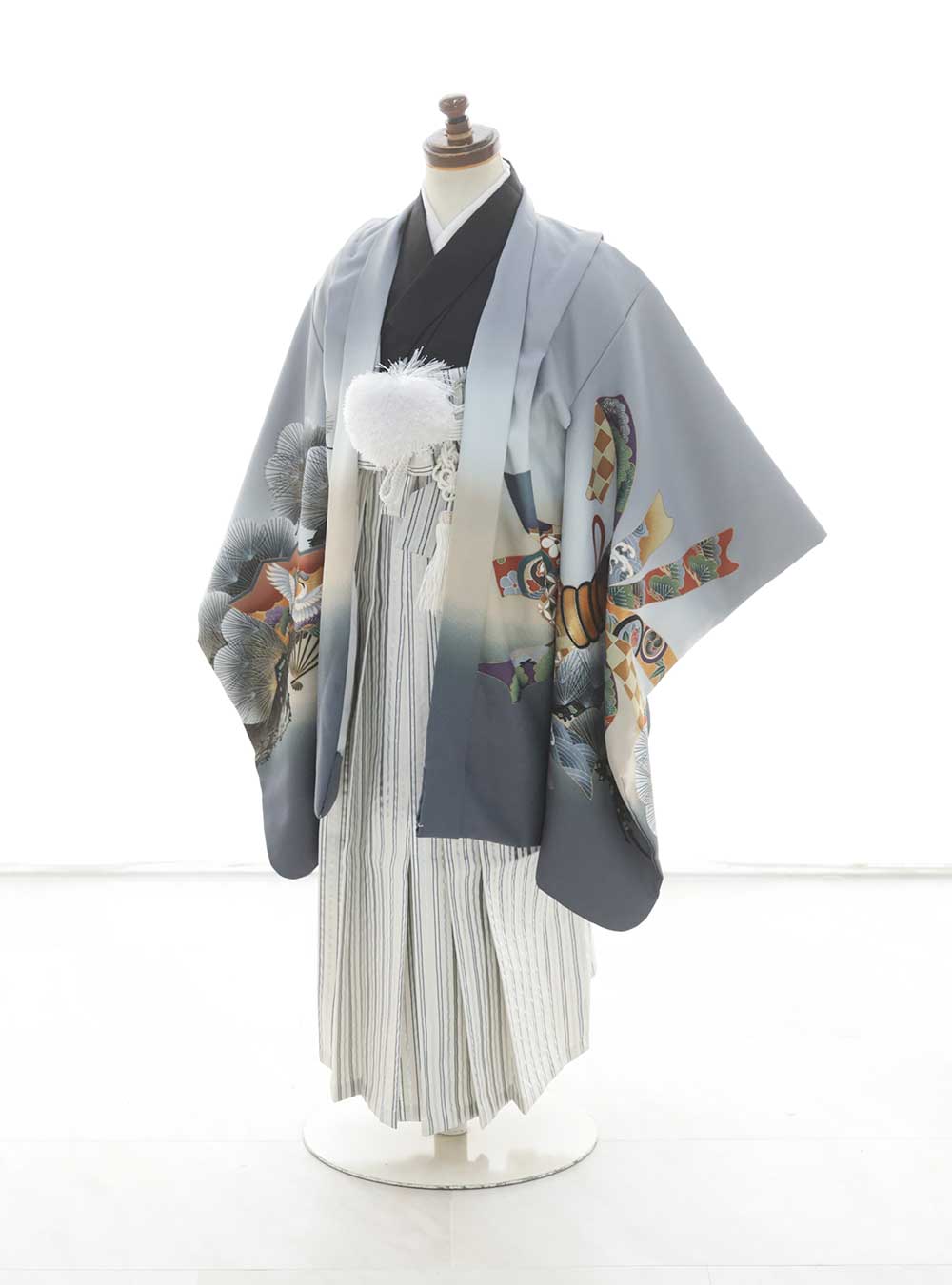 ライトグレーと白をメインにした上品なデザイン。鮮やかなカラーで描かれた熨斗目柄は、「祝福」や「絆」といった意味を持ち、古くより多くの人々に愛されてきた文様です。 淡いカラーを伝統柄が華やかに彩り、シンプルながらも高級感のあるスタイルです。