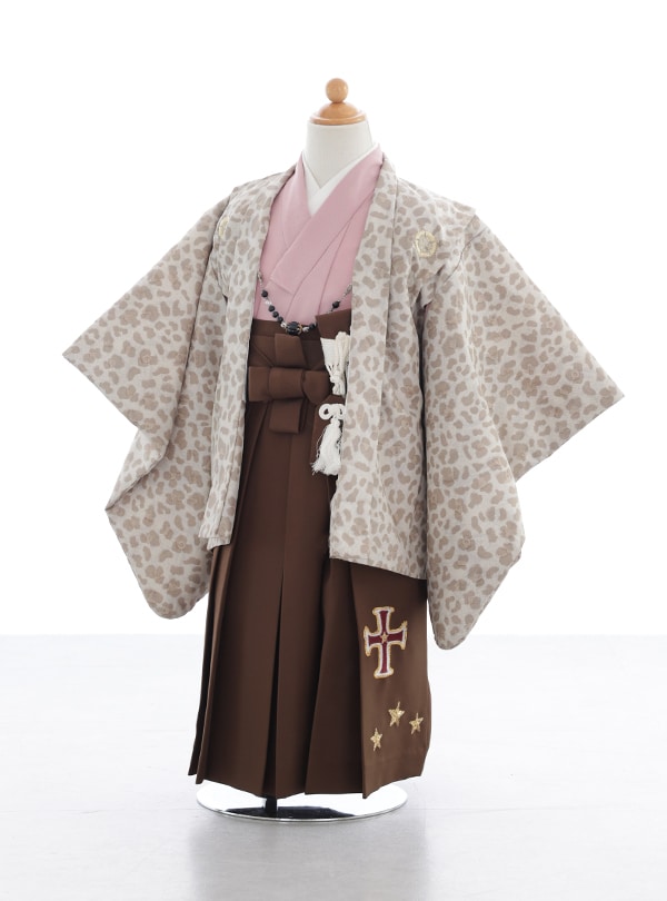 アニマル柄の羽織がインパクト抜群!ピンク×ブラウンのカラーコーデが個性的でかわいい衣装です。 袴には刺繍のワンポイント入りで、ディテールまでおしゃれにこだわった一着。遊び心がありつつも、カッチリとした感じもあるので七五三や記念日フォトにぴったり。 人とかぶりたくない!というご家族におすすめの、注目度◎なスタイルです。