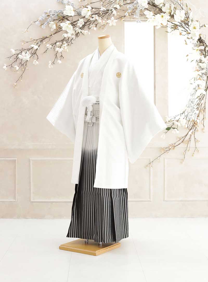 白も紋付袴の定番色のひとつ。白はシンプルながらとても高級感があり華やかさと明るさがあります。さらにけがれのない純白の色で清潔感や信頼感、そして神聖さや高貴さも感じる色です。光を連想させるような明るい色なのでお写真映えもすることから、ウェディングフォトという晴れの舞台にふさわしい品格を保ちながら、華やかさも演出したいという方には白色の紋付袴がおすすめです。