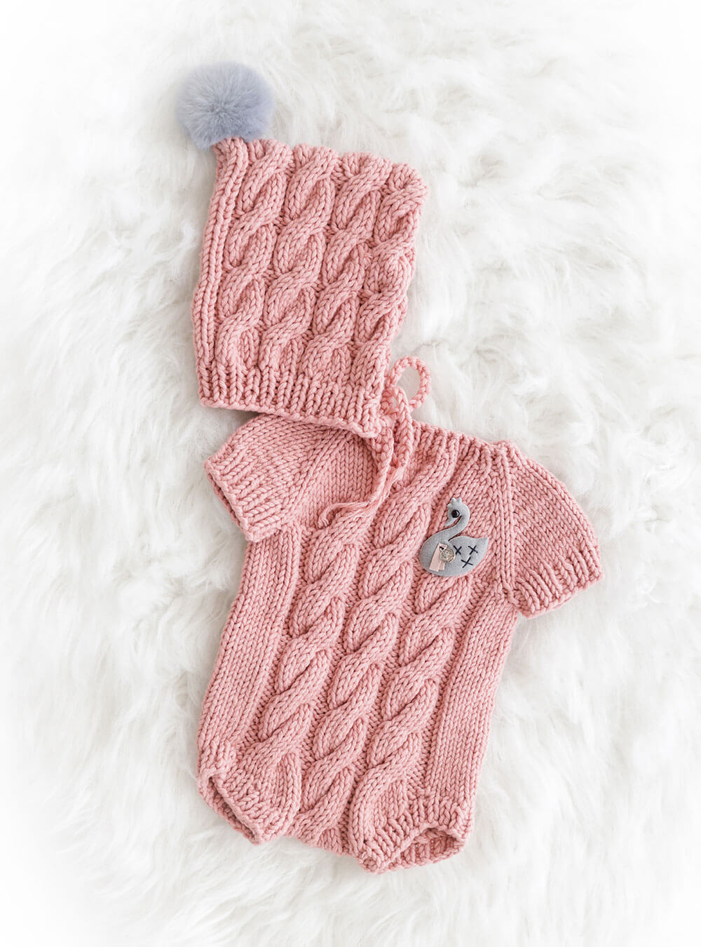 この愛らしいピンクのケーブルニットは、温かみと可愛らしさが詰まった一着です。 柔らかなポンポンがついた帽子がセットになっており、赤ちゃんの可愛らしさを引き立てます。