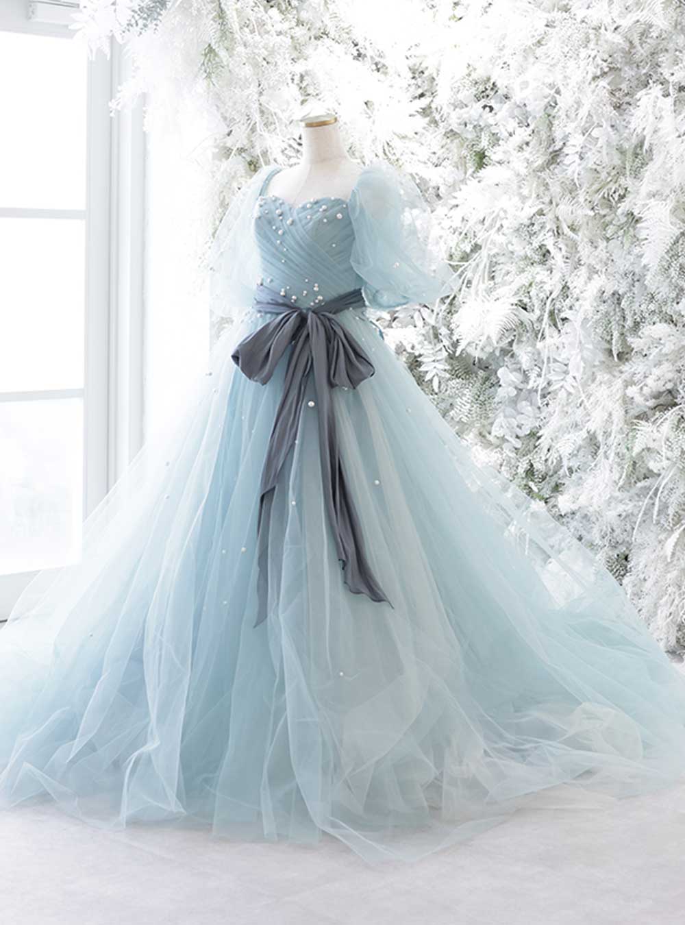 チュールをたっぷりと重ねたボリューム感のあるドレス。袖やビスチェに散りばめられた大きさの異なるパールがポイントです。 取り外し可能なシースルーのパフスリーブ+ハートカットでデコルテがすっきり綺麗に見えます。サッシュベルトはサテン生地リボンとモアレ柄リボンの2種類をお好みに合わせてコーディネートできる5wayのドレスです。