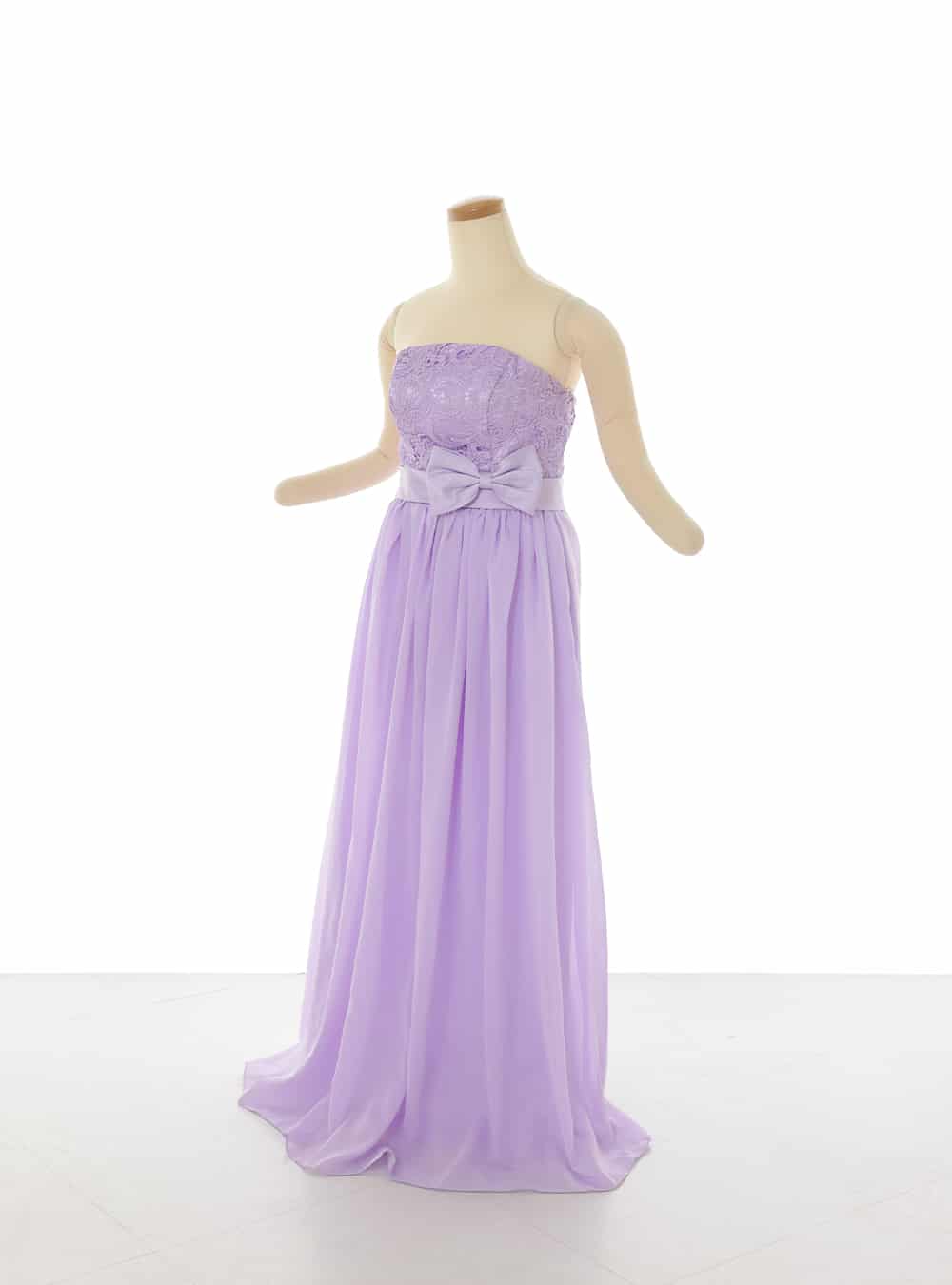 ワンカラーのシンプルなドレスです。紫ですが落ち着いた淡い色味なのでふんわりとした印象です。ドレスのボリュームは少なく、シンプルなデザインですが色味も淡く切り替えの部分にリボンが付いているので可愛く、ガーリーな雰囲気で撮影することができます。 アクセサリーは胸元が大きく空いているので大きめがおすすめです。SM-DRS001のドレスとお揃いなのでお友達同士や年齢の近い姉妹での撮影にもピッタリ!