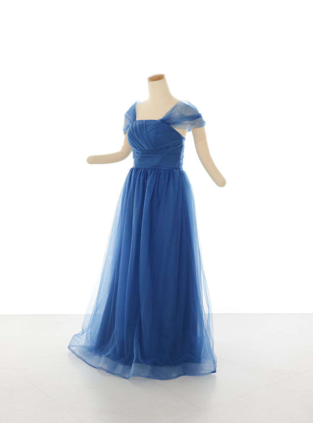 全体的にシンプルですがブルーのカラーが存在感を引きだしてくれます。刺繍やラメ感などがないのでシックで大人っぽく仕上げることができます。 ドレスがシンプルなのでネックレスやイヤリングでゴージャス感を出すこともできます。足元が見えるドレスなのでヒールのあるシューズですらっとした印象です。クールな雰囲気で撮影したい方にピッタリ!