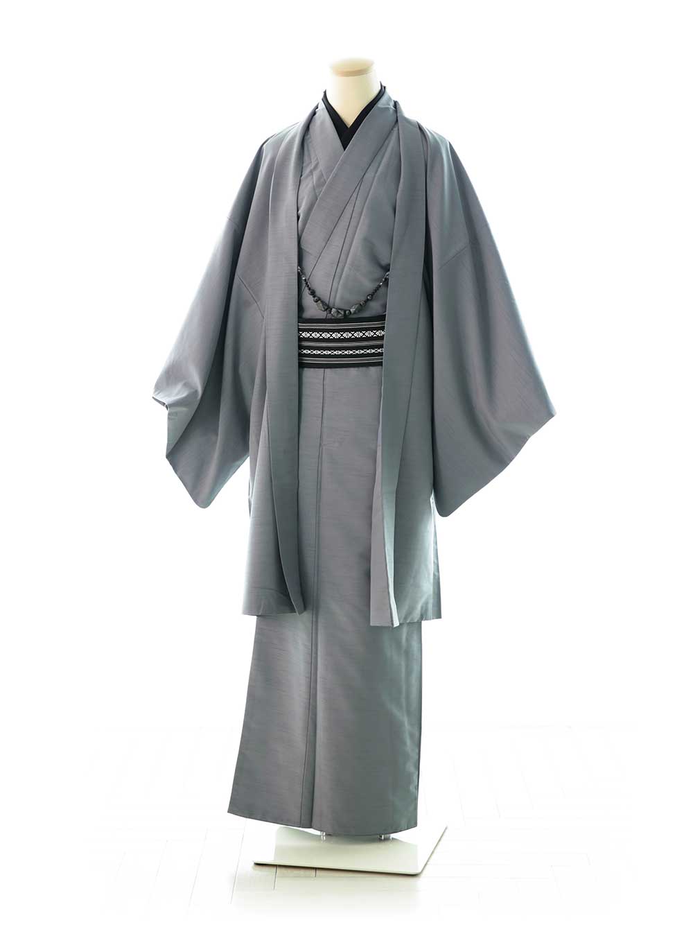 明るいグレーのシンプルなカジュアル着物。 上品な色合いとカジュアルさがお子様の衣装を引き立ててくれます。無地のデザインながら色味と質感がフォーマルな家族写真にも合いやすく、幅広い世代の方に着用していただけます。淡いグレーカラーが控えめで落ち着いた印象にしてくれる一着です。