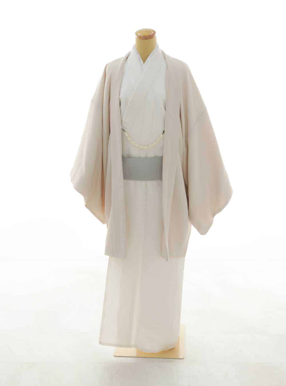 白とアイボリーの非常に上品で清楚なデザインが特徴です。柔らかな色合いは優雅で落ち着いた印象を与え、シンプルでありながらも清楚な白に優しいアイボリーが加わることで、全体のコーディネートを一層引き立ててくれます。 帯の淡いグレーが全体を引き締め、バランスの取れた美しさを演出します。家族全員で淡色コーデをするのにピッタリの一着です。