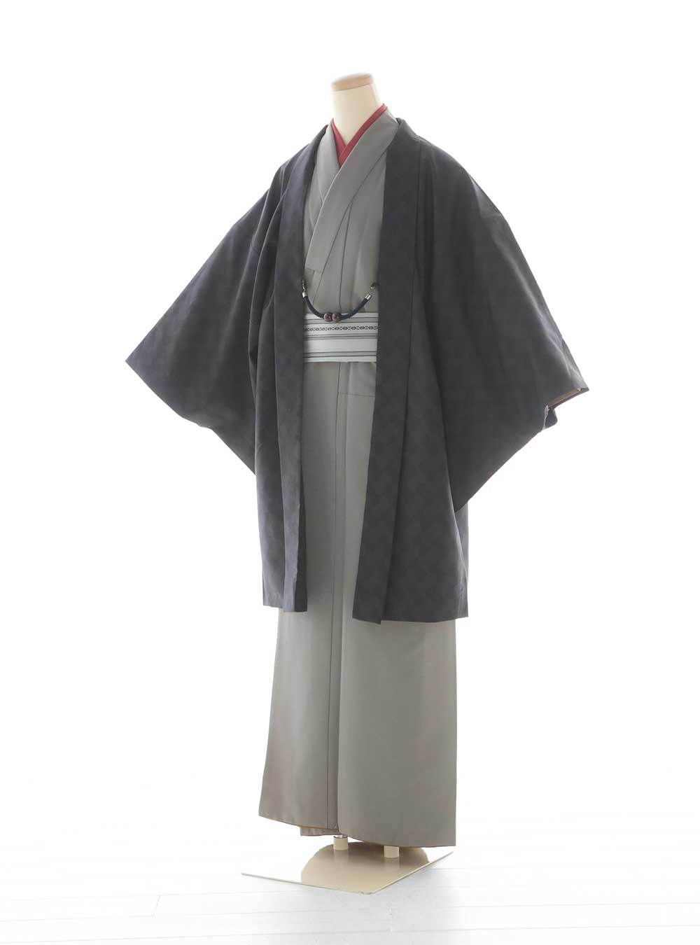 グレージュを基調にしたシンプルなカジュアル着物です。 グレージュに落ち着きのある深みブラウンの組み合わせが全体のコーディネートに引き締まりを持たせ、高級感のある印象にしてくれます。さらに羽織には格子模様が施されており、控えめながらも目を引くブラウンが格式高く上品な雰囲気になります。