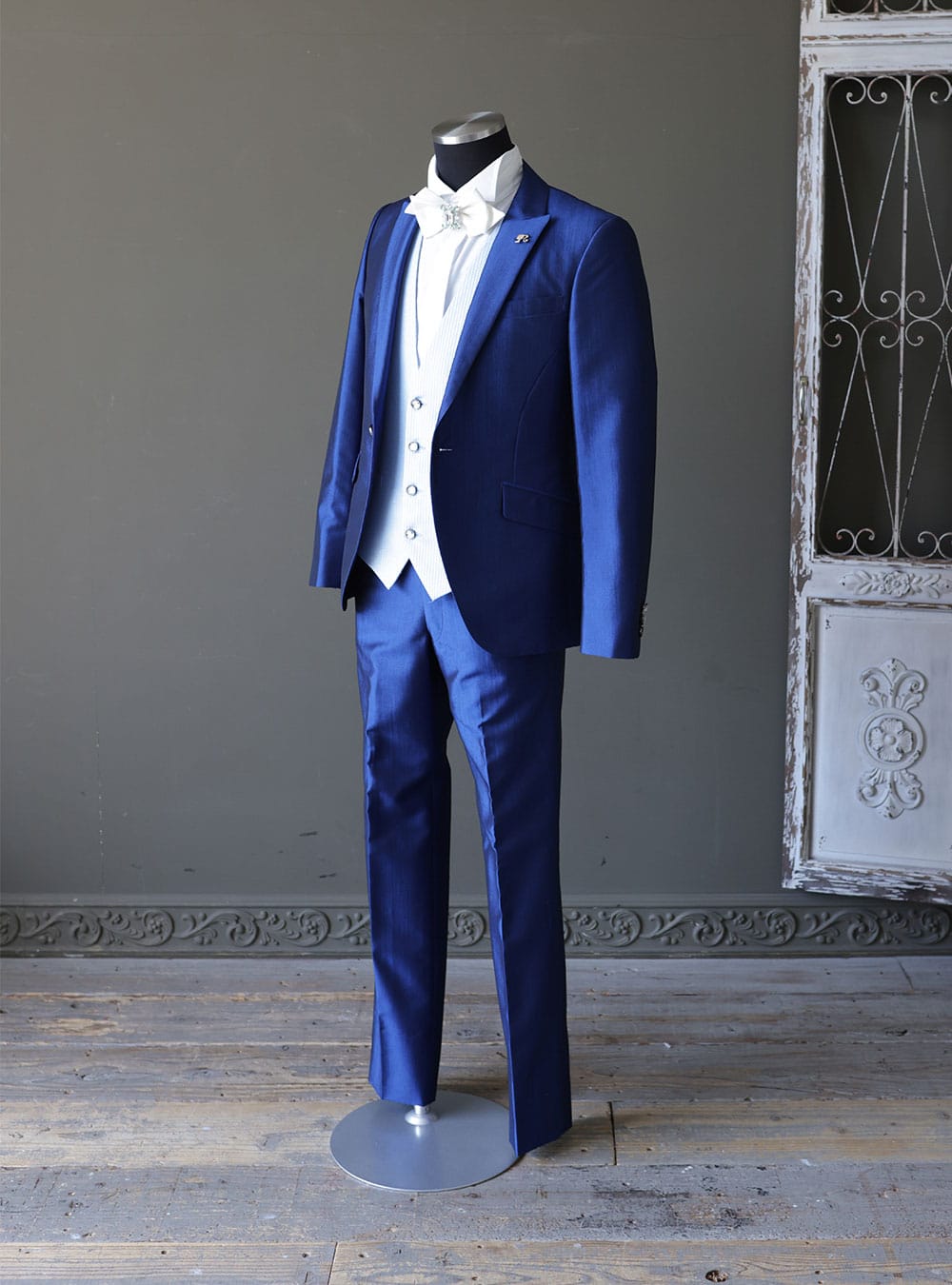 涼やかなサマーカラーのベストが、フォーマルシーンを程よくカジュアルダウンさせてくれるタキシード。 程よいヌケ感が春夏のブライダルにおすすめ! ジャケットは流行のショート丈でスッキリ、スタイリッシュに仕上げます。 低身長さんにもなじみやすいシルエットで人気のタキシードです。