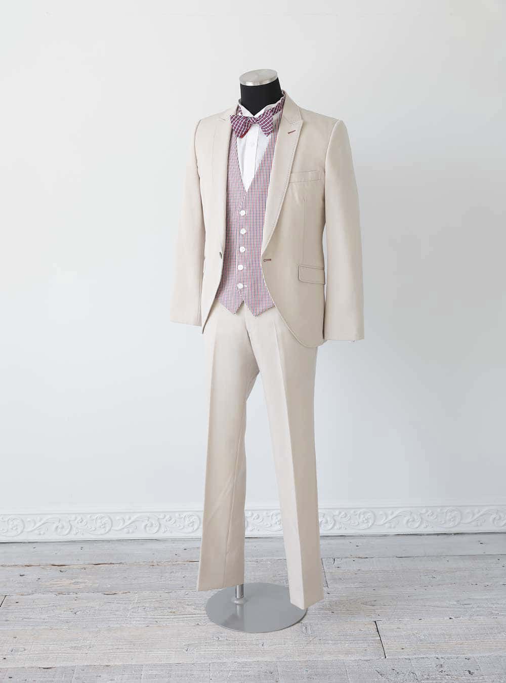 マットな素材でより自然体にナチュラルなテイストに仕上げたシングルタキシード。 アクセントカラーにもなる蝶ネクタイがカジュアルな雰囲気にピッタリです。 ベストはリバーシブルタイプで、蝶ネクタイと同じカラーのチェックのバージョンでの着用も可能。よりカジュアルにコーディネートもできます。 ジャケットは流行のショート丈でスッキリ、スタイリッシュに仕上げております。 Mサイズ、LLサイズと展開しており高身長さんにもお召いただけます。