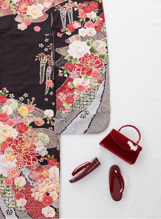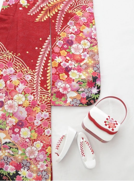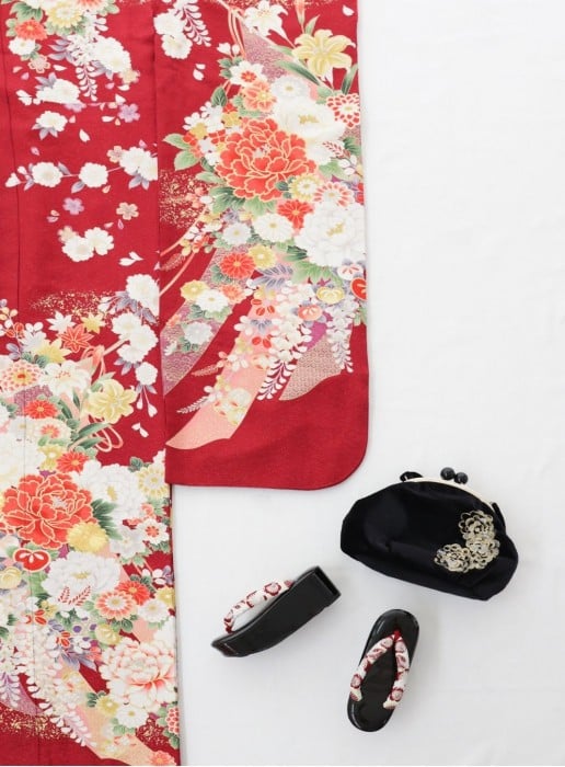 ※撮影用振袖一式:振袖・長襦袢・帯・帯揚げ・半衿・重衿・帯締め・ショール・草履・バッグ