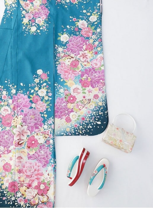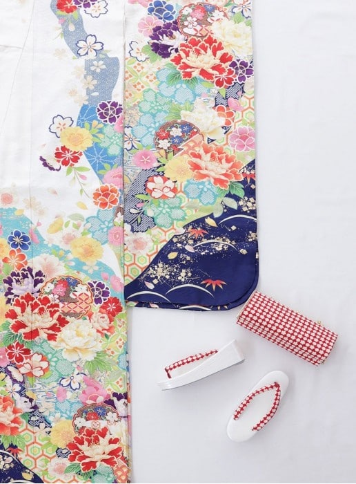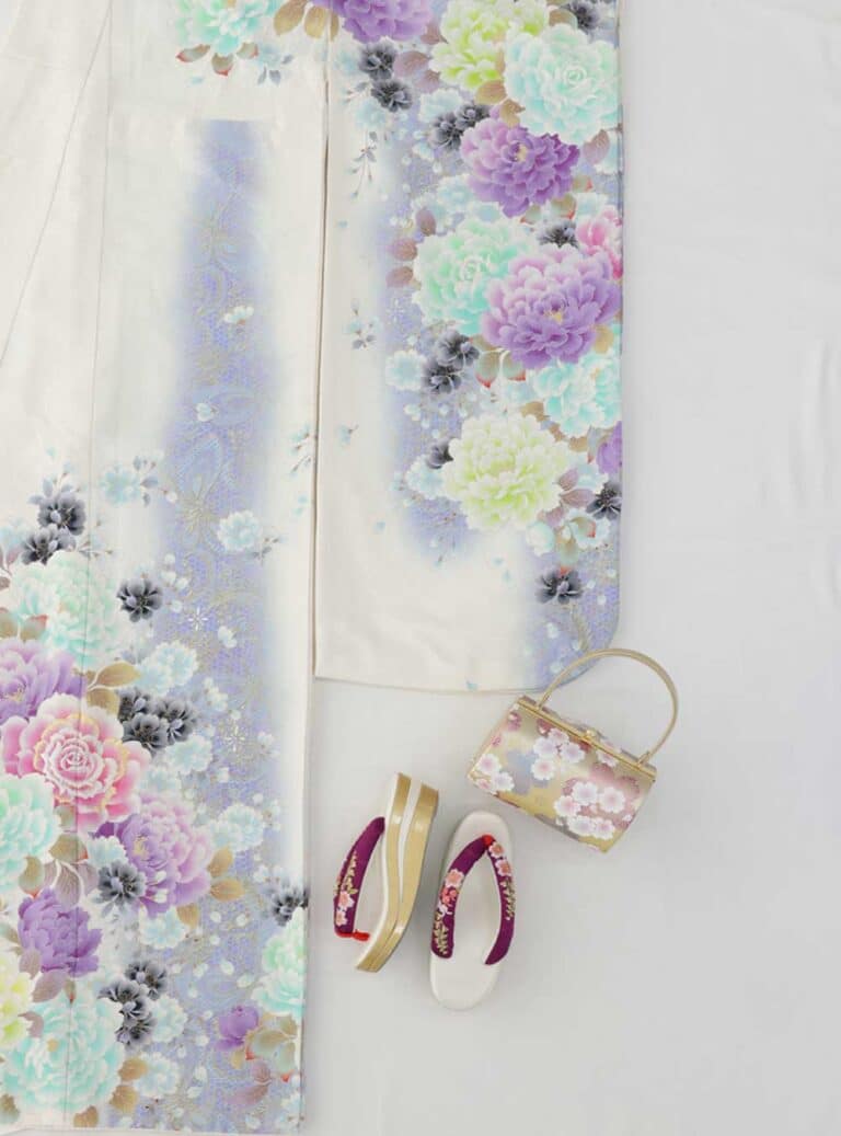 スタジオエミュにある振袖からお好きなものを選んで撮影。成人式(二十歳の集い)当日には振袖と小物一式をフルセットでレンタル。ご希望の方は式当日にスタジオエミュ着付けやヘアメイクまでまとめて行えます(別途料金)