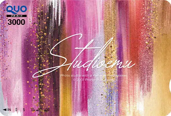 振袖展覧会にてご成約いただいた場合はスタジオエミュオリジナル「QUOカード3,000円分」もプレゼント
