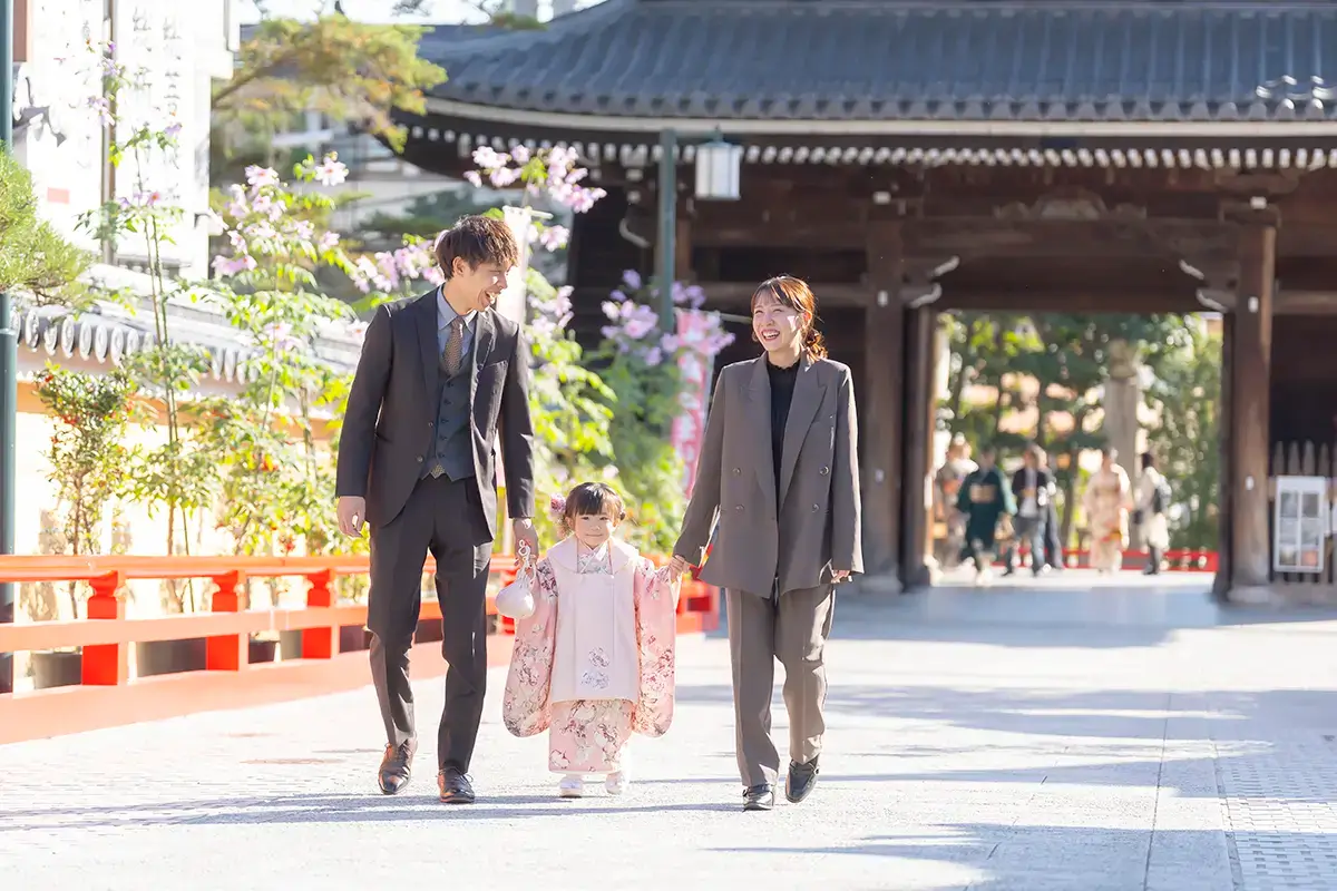 フォトグラファーが同行し、境内でのご家族の自然な表情や、お参り前後の雰囲気を丁寧に撮影。