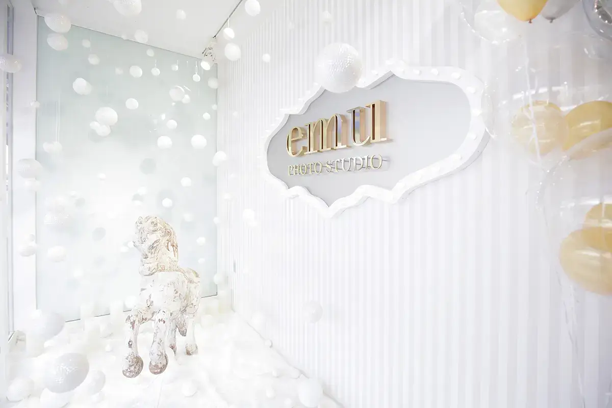 バルーンと月のオブジェが可愛い夢のようなスタジオ。