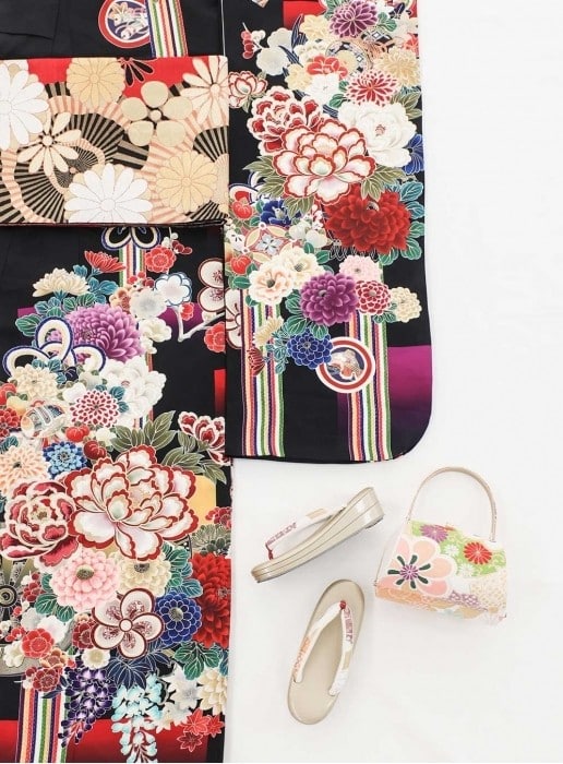※撮影用振袖一式:振袖・長襦袢・帯・帯揚げ・半衿・重衿・帯締め・ショール・草履・バッグ